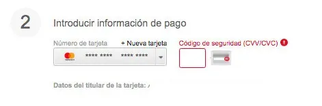 Paso #6 - Añade una tarjeta VISA válida y en vigor, o utiliza la que ya hayas registrado en tu anterior depósito. Acto seguido escribe el código de seguridad de tres cifras de la tarjeta.